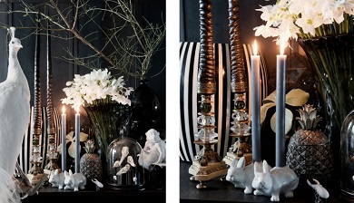 Wat nou donkere dagen? Knallen met kleur mag deze kerst! Kies één uitgesproken tint , zoals het geel op de foto en combineer met trendy gouden, zilveren en koperen accessoires voor een huis waar je vrolijk van wordt! Doe net als op de foto en hang kerstballen aan visdraad aan het plafond of spuit oude kanselaars en vazen in metallic kleur voor een uitbundig en kleurrijk decor.